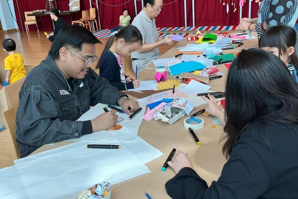 Dalam bengkel ‘Pass It On’, Encik Muhammad Muazzam mengendalikan sesi di St. Joseph’s Home yang menghimpunkan penduduk warga emas dan pelajar jagaan kanak-kanak (K1 dan K2) menerusi aktiviti berbentuk seni. Usaha ini bertujuan menghubungkan imaginasi kanak-kanak dengan pengalaman golongan dewasa. – Foto ihsan MUHAMMAD MUAZZAM